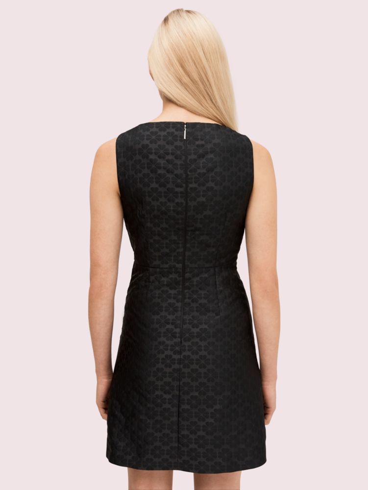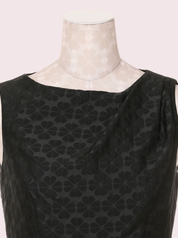 we think every wardrobe should include at least one little black dress. for this a-line one, we took lightweight taffeta and jacquard and wove it with our spade flowers for a feminine, textural spin on a classic. look even closer and you'll see we added draping to the left shoulder--an elegant finishing touch. style it with flats or pumps when it's warm out, add tights when the weather cools.