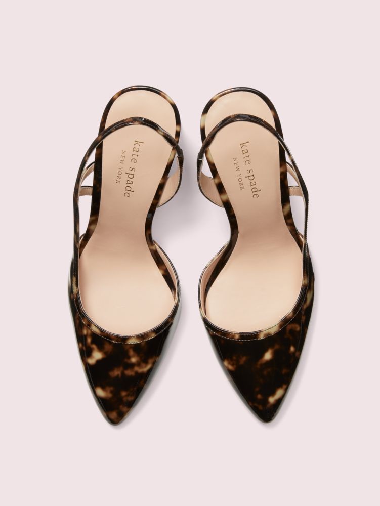 what's classic, neutral and sophisticated? these tortoiseshell patent leather heels finished with a feminine slingback that you'll wear for years to come.