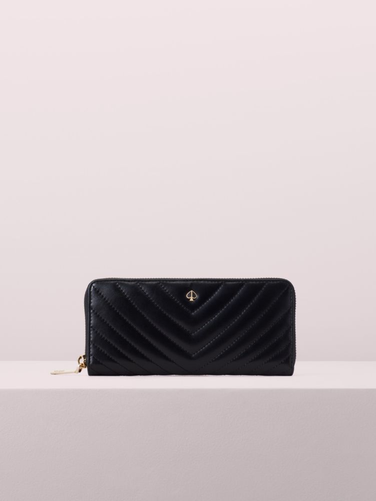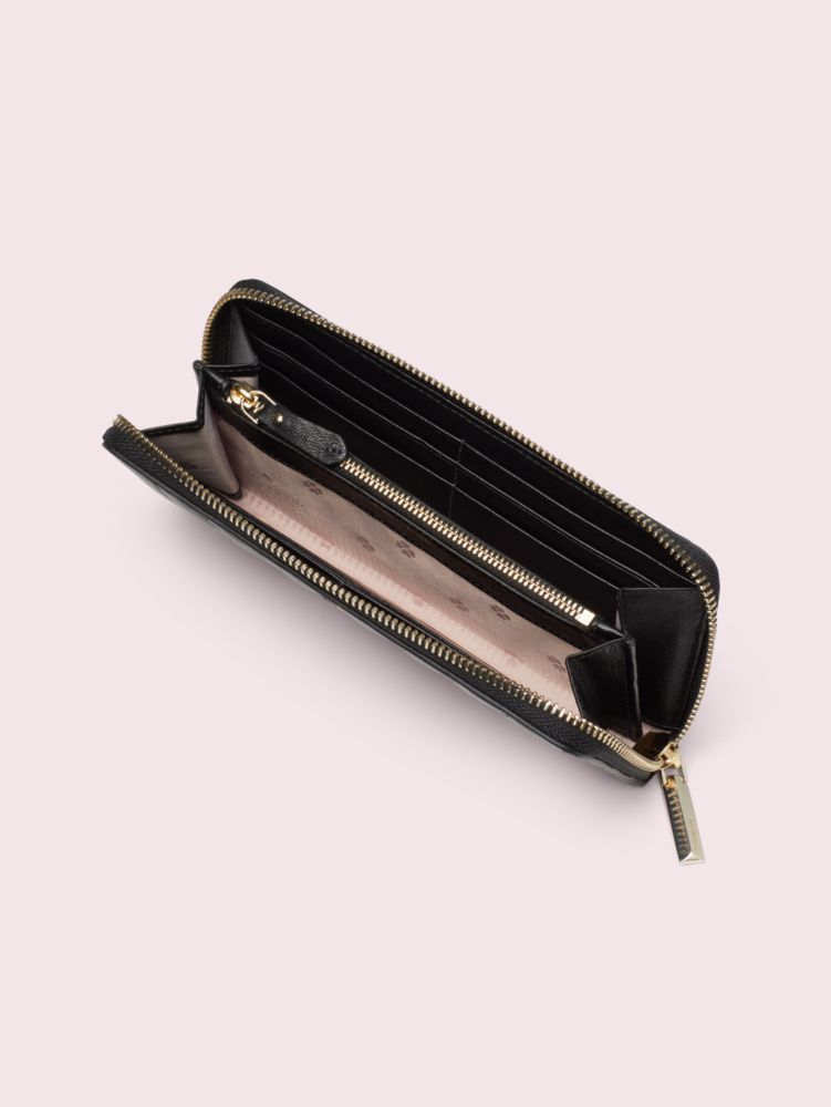 one of the many details that makes our amelia slim continental wallet unique is the way the quilting radiates from the bold, enamel spade. it’s also crafted from luxuriously smooth lambskin leather and features our tonal enamel spade. but don't be deceived by the word slim. once un-zipped, this pretty piece reveals 12 card slots, two bill pockets, a middle zipper compartment, and expandable gussets for extra space.