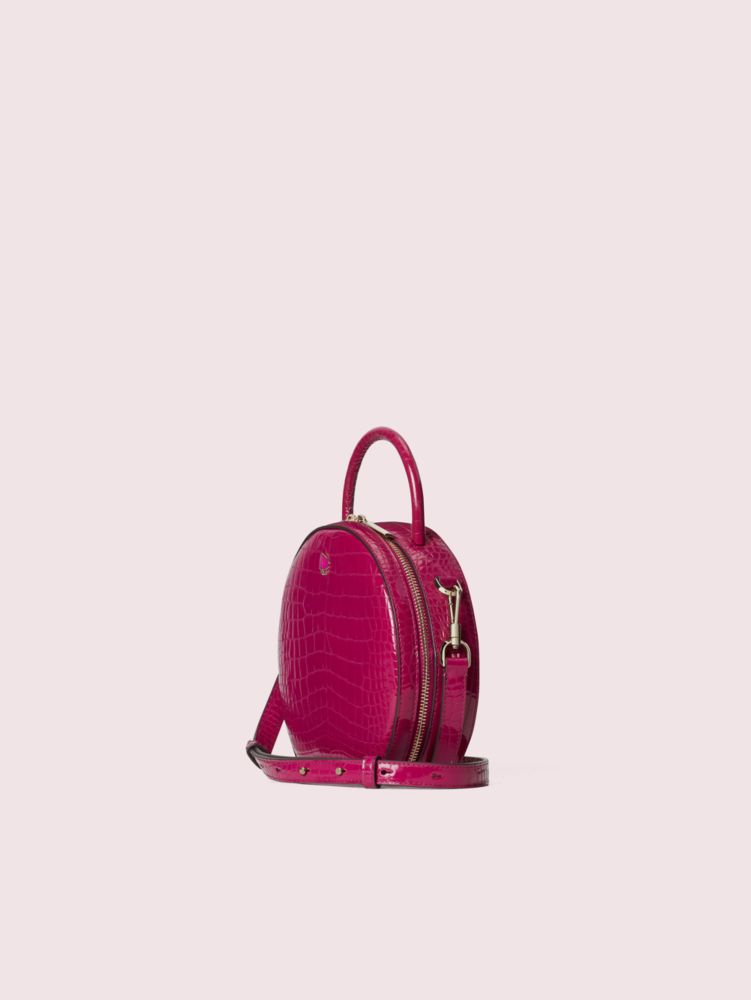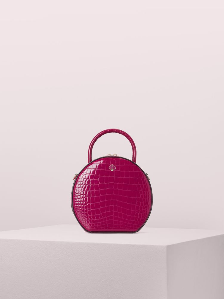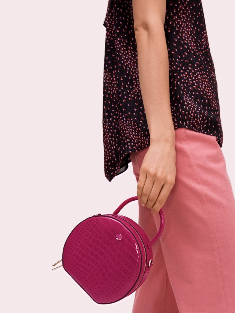 we reimagined our andi canteen bag in soft, shiny croc-embossed italian leather for fall. (we're feeling a soft glamour moment.) this feminine silhouette is punctuated with an enamel spade detail for a signature touch. we included an adjustable crossbody strap that clips on and off, and a double zip closure that opens to an interior with a snap tab slip pocket that fits two phones, plus a place for cards. the flat base ensures it sits pretty wherever you place it.
