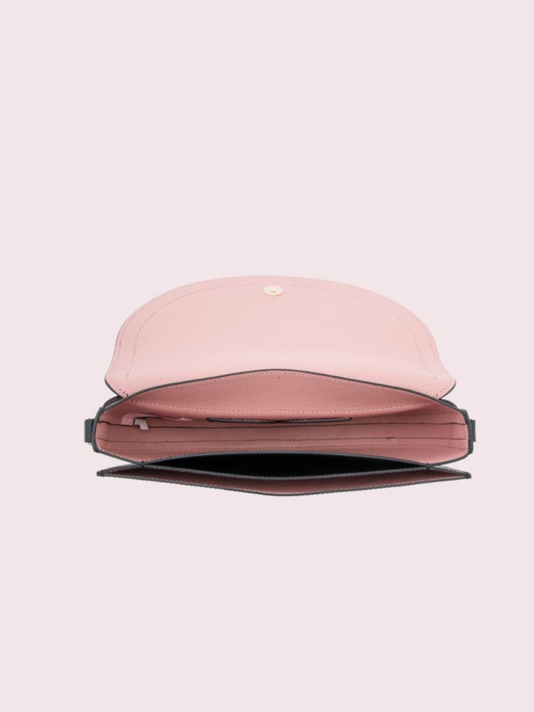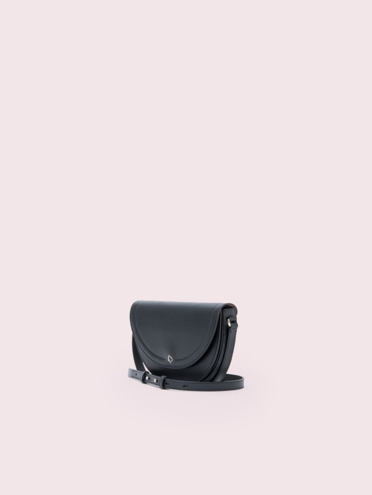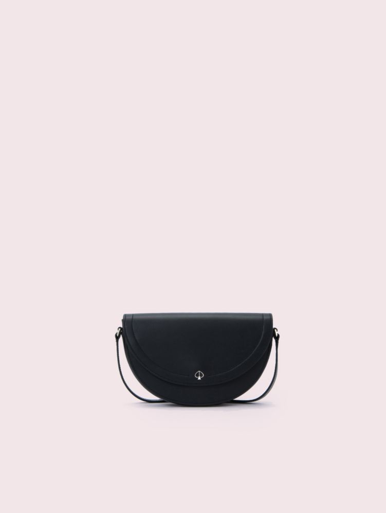 our andi half moon crossbody is a modern take on a classic silhouette. done in smooth italian leather with an enamel spade detail, it features an adjustable strap with beautiful, jewelry-like hardware. several pockets inside keep things organized, the plunge on the back slip pocket is a seductively subtle nod to the curves of our signature mark. contrast lining, a gold foil emboss logo and a snap closure are other understated details that make this little bag special.