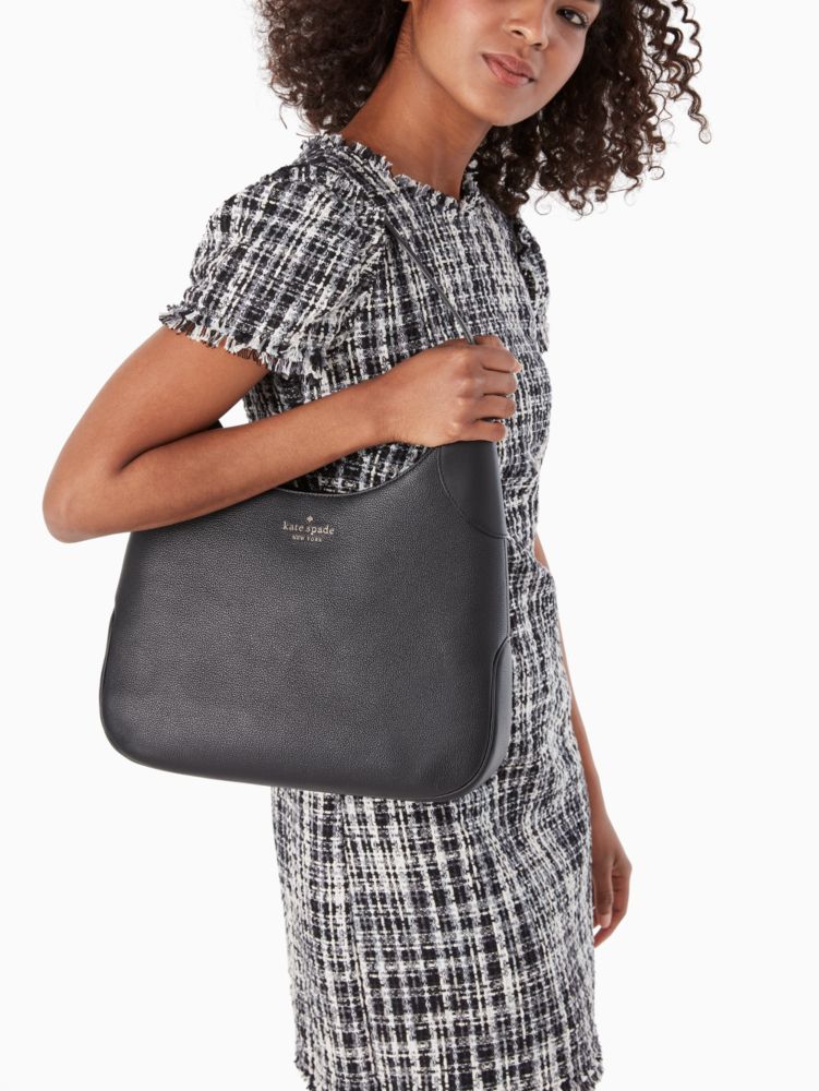 we think a shoulder bag should be two things: chic and functional. this pretty one holds all of your essentials--wallet, keys and phone--and has a pocket to stash snacks (be it gummy bears or almonds). because those are essential, too.