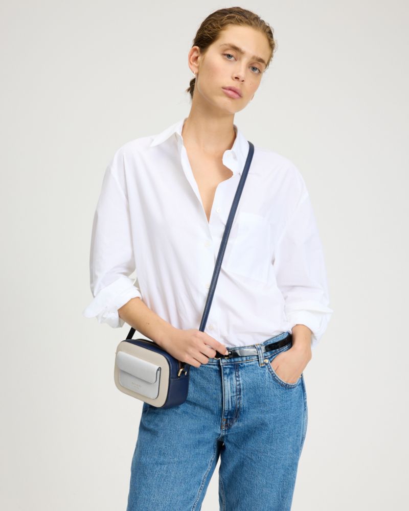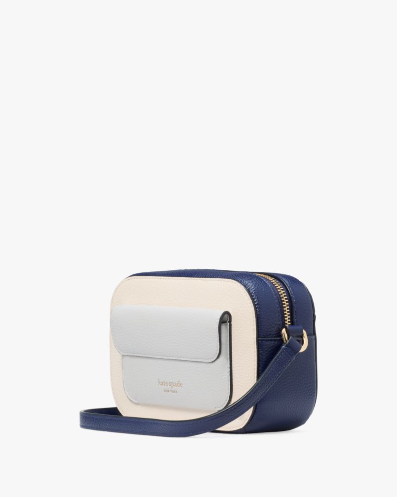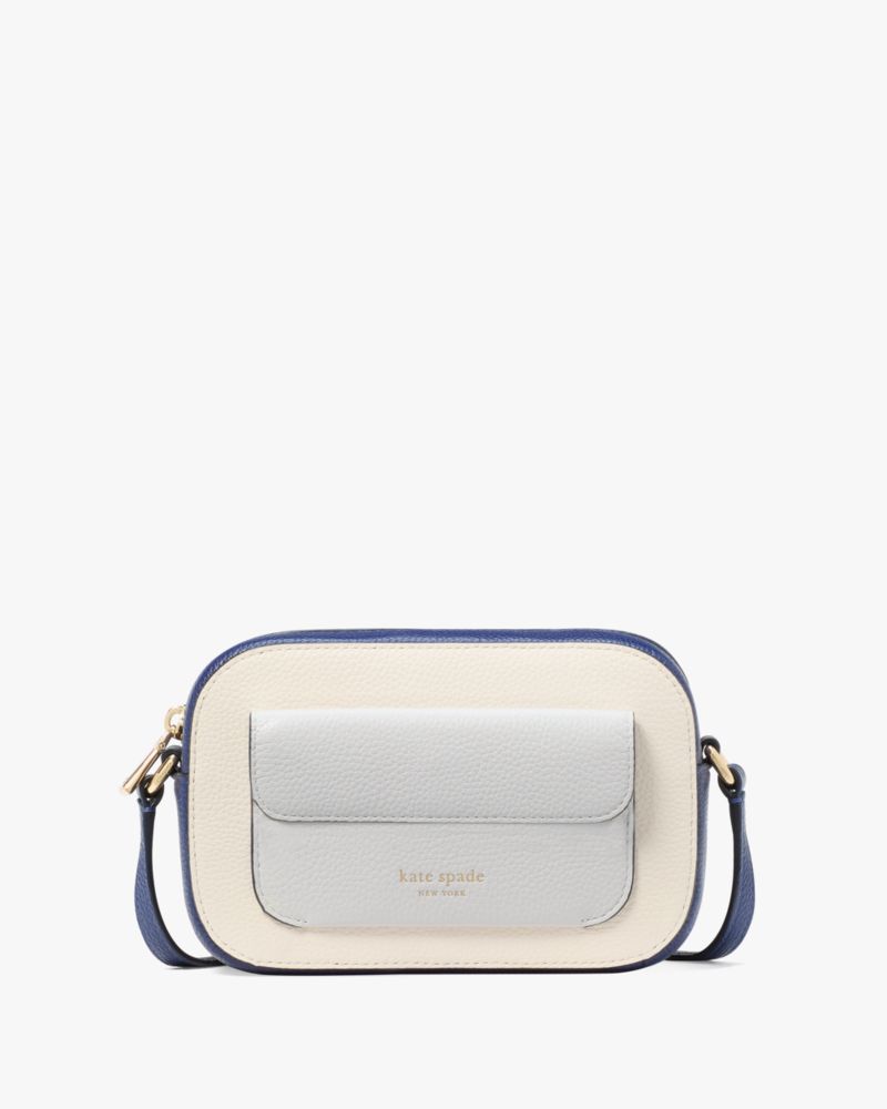 Crafted in colorblocked pebbled leather, the Ava crossbody is a classic, hands-free style with a little more storage, thanks to its extra front flap pocket.