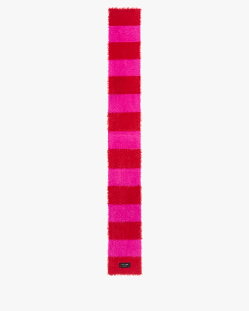 Kate Spade,Awning Stripe Fuzzy Scarf,Fuzzy Knit,Rectangle,Logo,Tag Embellishment,Casual,