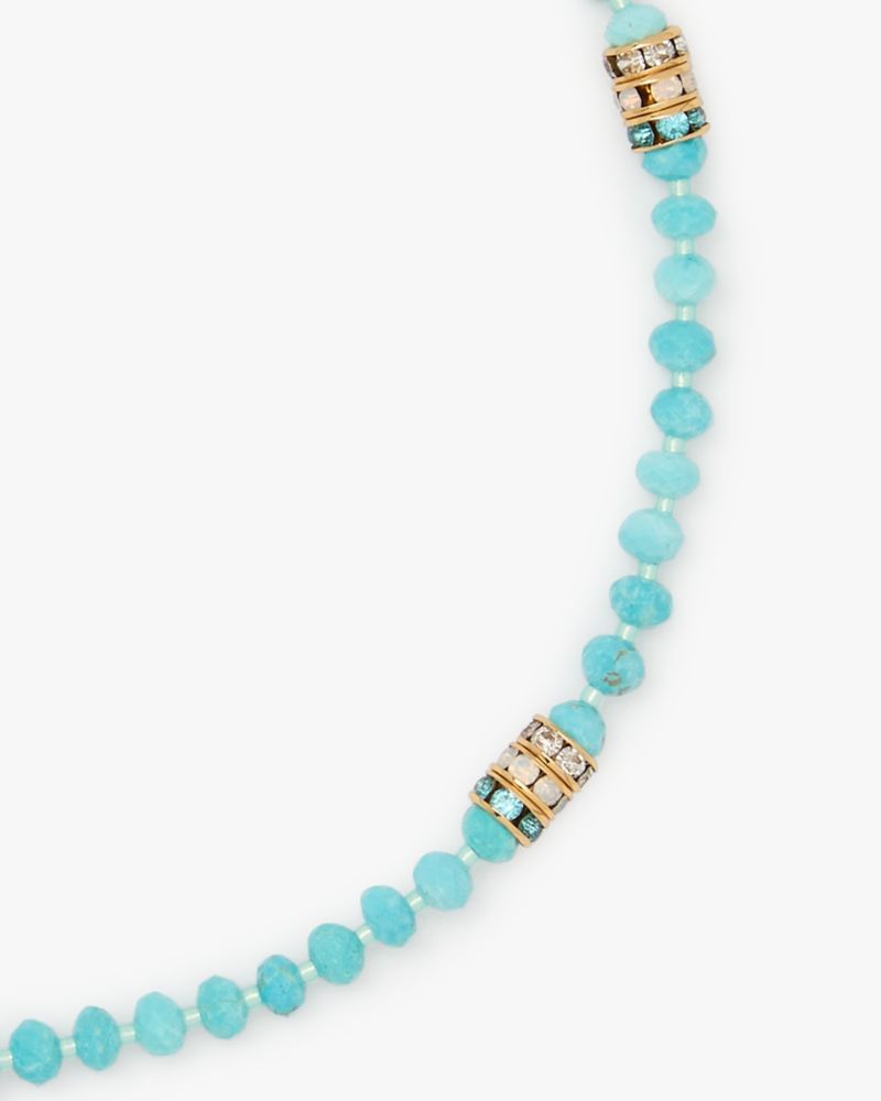 - Plated metal,cubic zirconia, czech stone, seed bead, semi stone (turquoise), thread