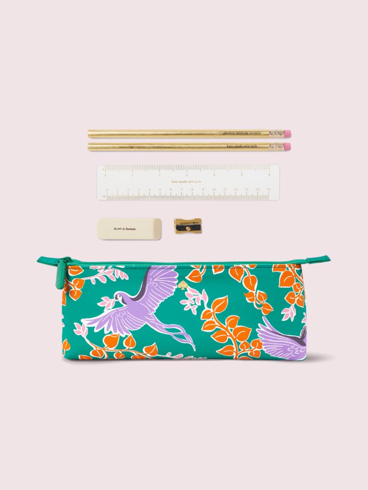when you need to do things the old-fashioned way: we think this bird party pencil case with a sharpener, eraser, ruler and two pencils will come in handy.