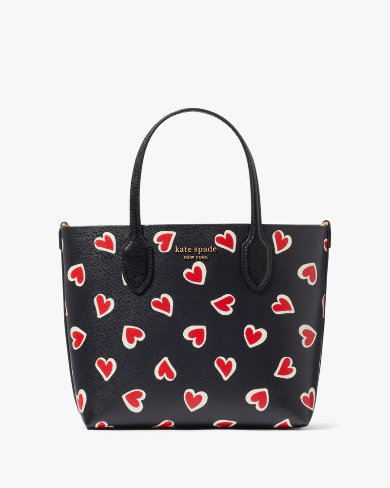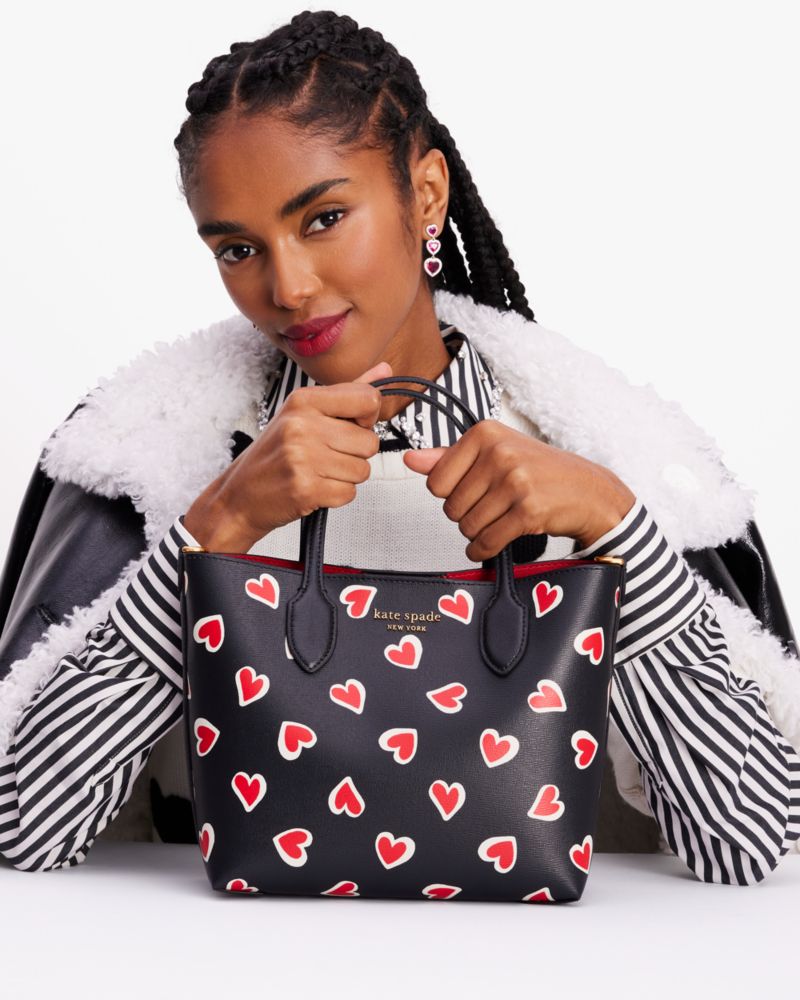 ABMESSUNGEN, Höhe: 20,3 cm, Breite: 26,7 cm, Tiefe: 10,2 cm, Grifflänge: 12,1 cm, EIGENSCHAFTEN: Tote Bag zum Umhängen mit Druckknopfverschluss, mittiges Reißverschlussfach, optionaler (und verstellbarer) Umhängeriemen, mit Stift befestigtes Logo, mit Platz für das aktuelle iPhone, MATERIAL: PVC mit Rand aus Saffianleder, Faille-Futter, importiert, Produktcode: KE225