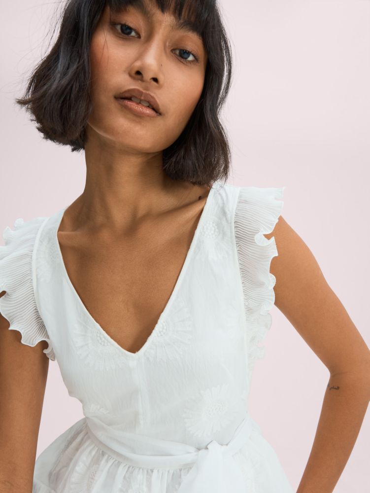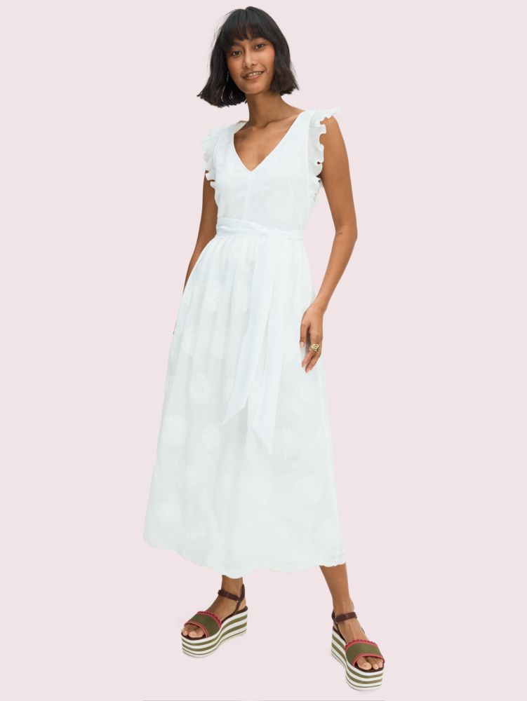 lightweight and breezy organza in a pop of color and embroidered with tonal flowers. it's kind of the perfect spring dress...