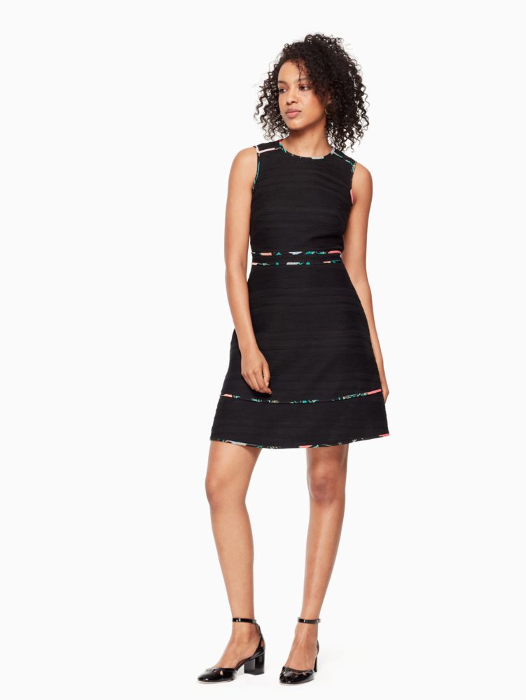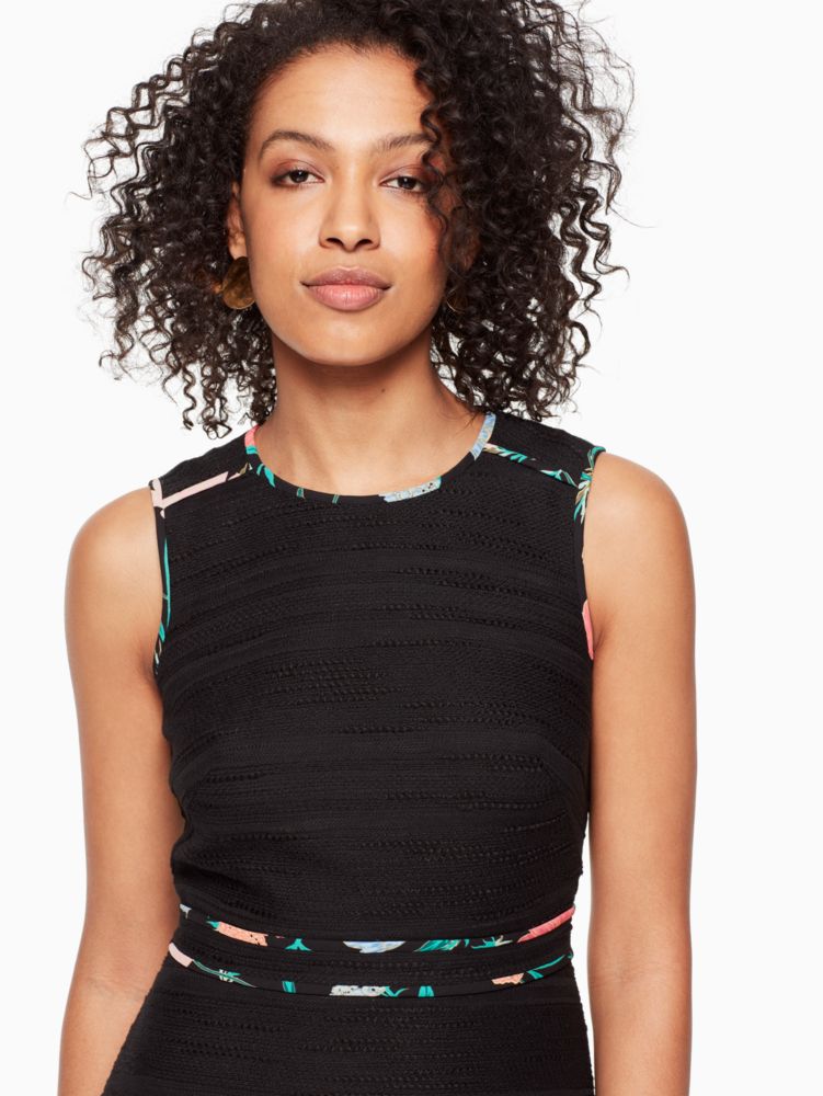 from the cobblestone streets of charleston to the avenues of new york, a tweed dress belongs in the wardrobe of every well-dressed woman. this classic number is updated with bold floral piping for a distinctly modern edge.
