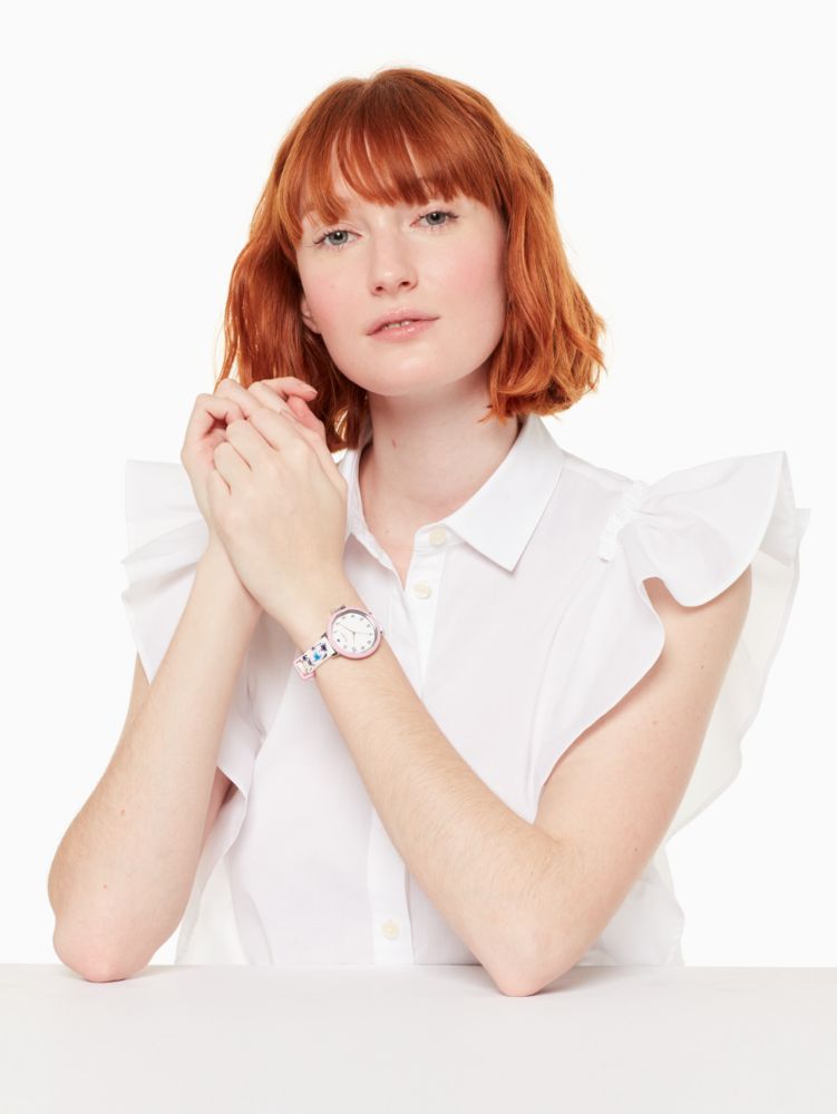 you know when you are admiring the palm trees on a far-flung beach, wishing you could stop time? this park row watch can't do that, but it will remind you to take in every precious second. courtesy of a glossy white dial and tropical-inspired silicone bracelet.