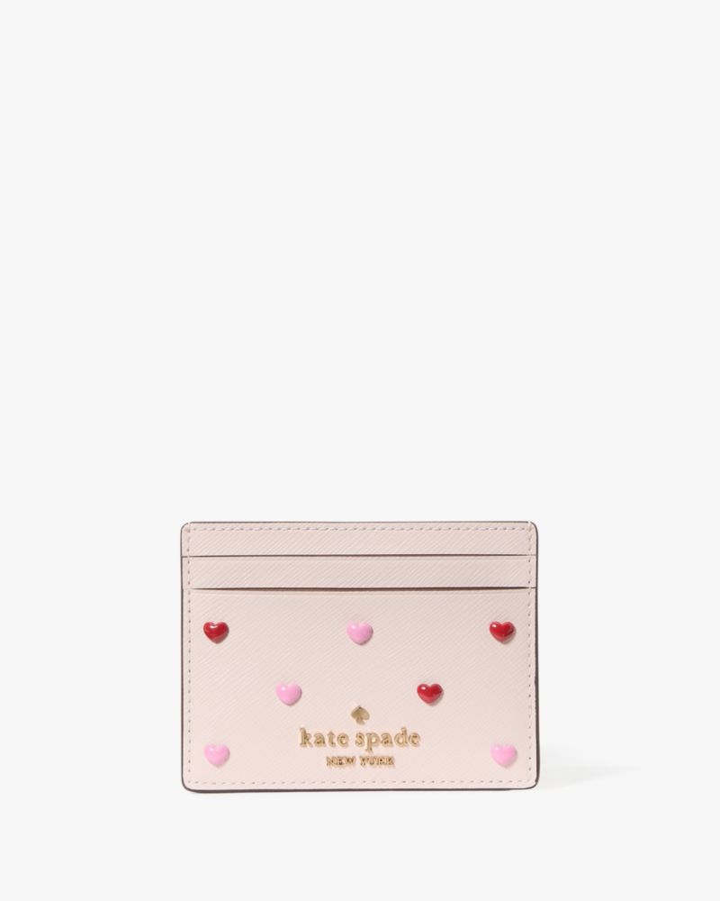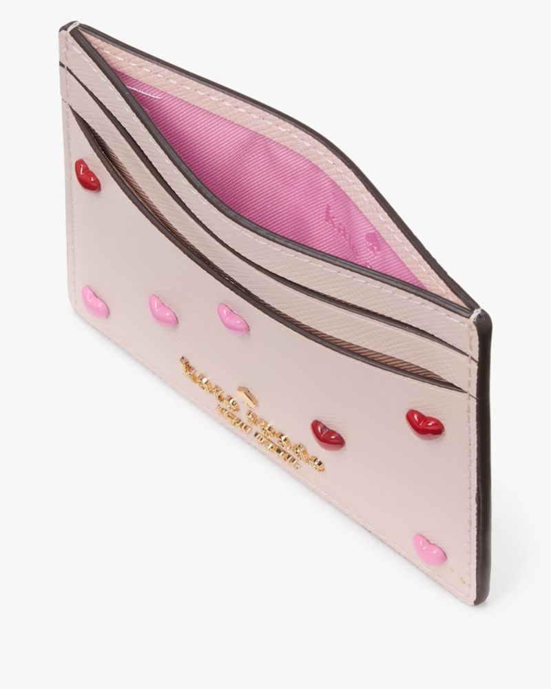 Kate Spade,Boxed Madison Heart Studs Small Slim Card Holder,Leather,Card Case,Metal,Logo,Casual,Pink