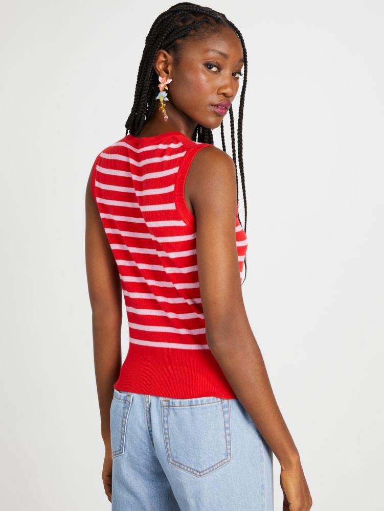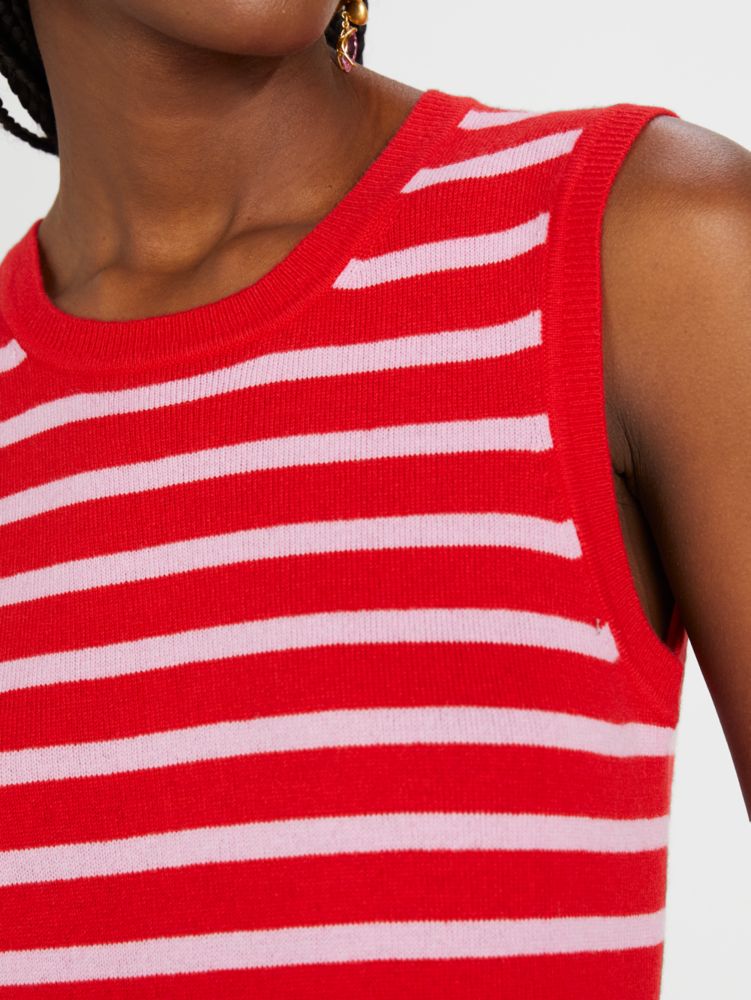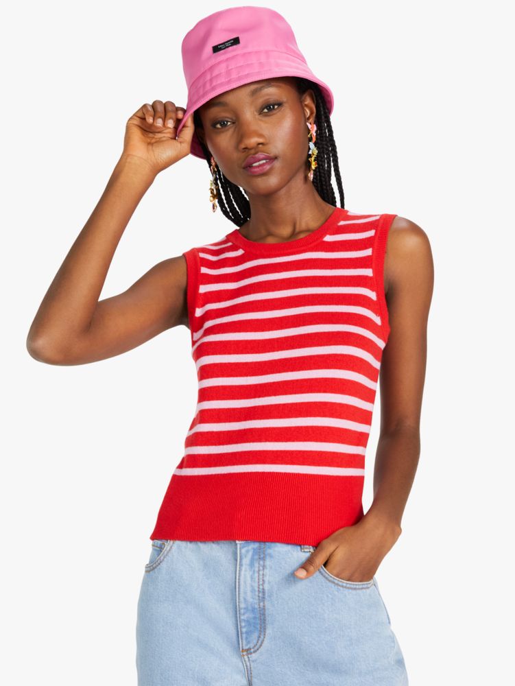 Knit from super soft cashmere, this lightweight shell makes a colorful statement with bright Breton stripes. Bonus: pair it with the matching cardigan for a vintage-inspired twin set look.