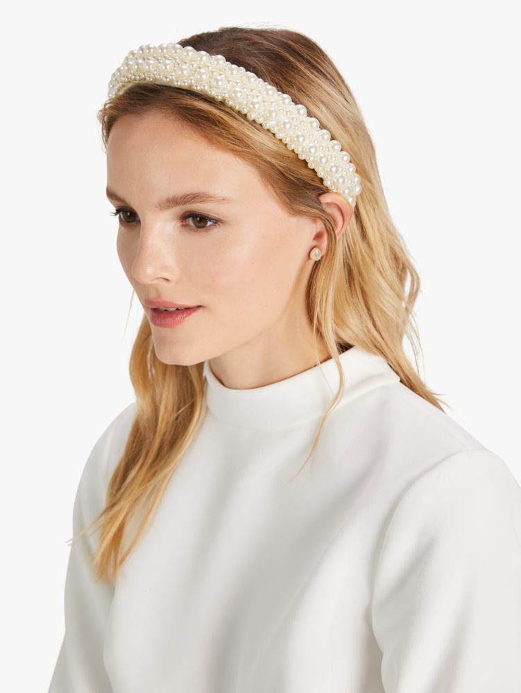 Here comes the bride…and her pretty satin headband. It's embellished with faux pearls for an elegant finish.
