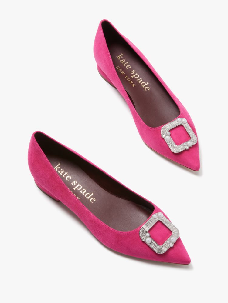 "ooh! where'd you get those flats?" you'll be hearing that a lot when you wear these suede flats, topped off with an elegant buckle.