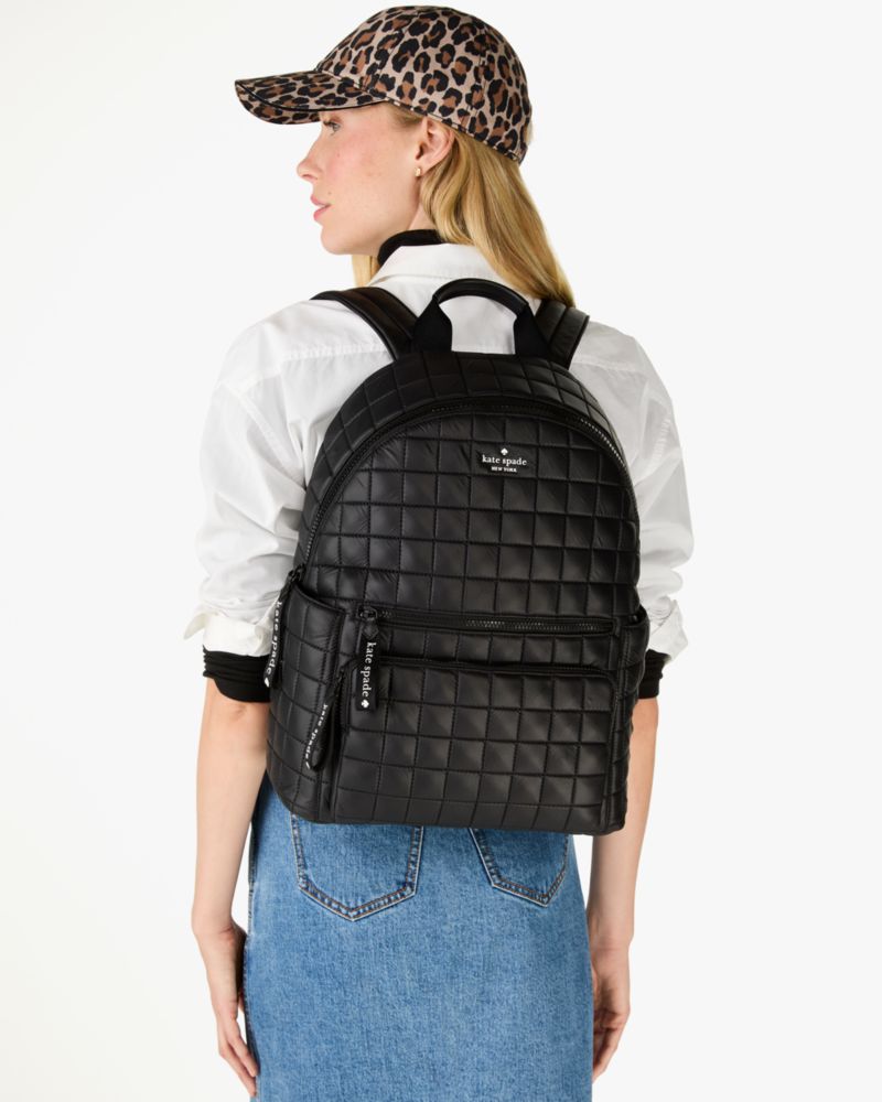 This bag is partially crafted with recycled materials, including its 100% recycled polyester shell and 100% recycled polyester lining. Our quilted Camden backpack is plush *and* practical, with plenty of pockets to hold your 15" laptop, cosmetic pouch, wallet and more.
