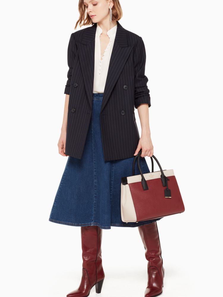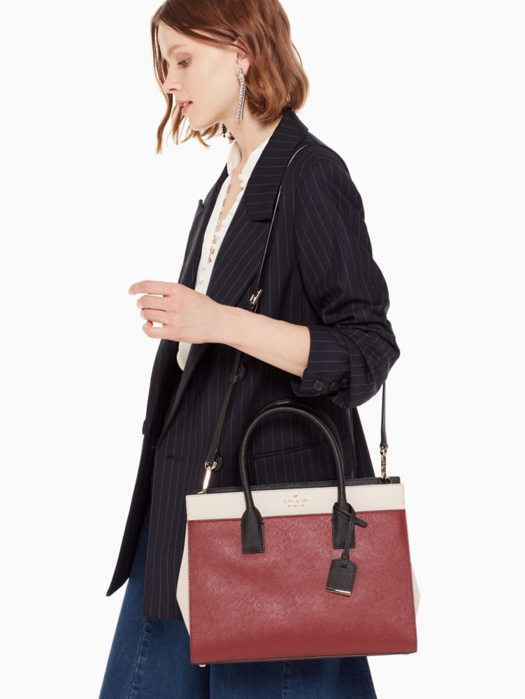 the cameron street candace combines a classic shape with a number of clever details, including exterior slide pockets, a dropped zip-top closure, an optional (and adjustable) shoulder strap and a matching decorative luggage tag. the result? a clean-lined, functional bag that looks chic with everything from a skirt suit to skinny jeans.