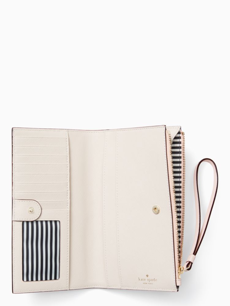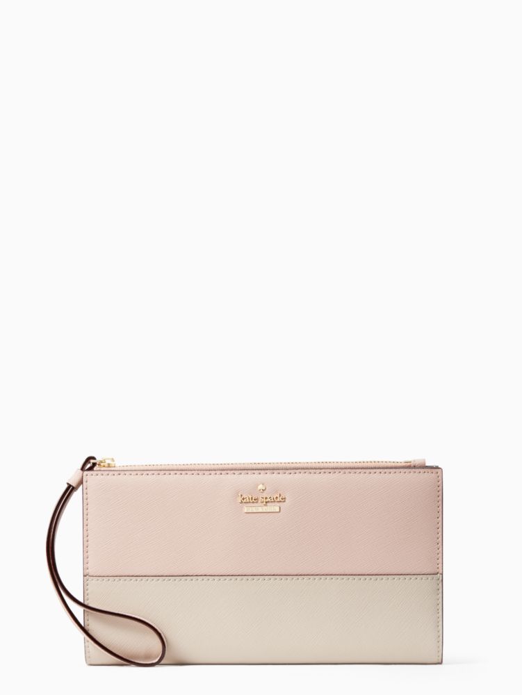 when you just can't bother with a whole handbag, grab the cameron street eliza and go. this chic wallet holds all your necessities, and it s smartly attached to a wrist strap for easy toting.