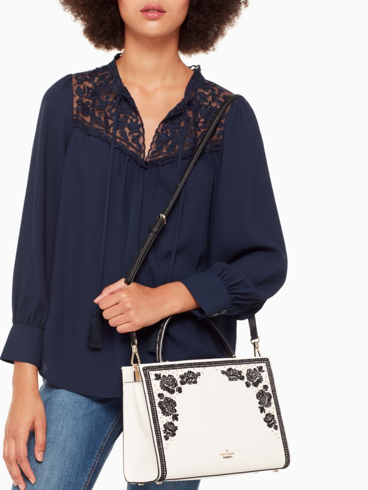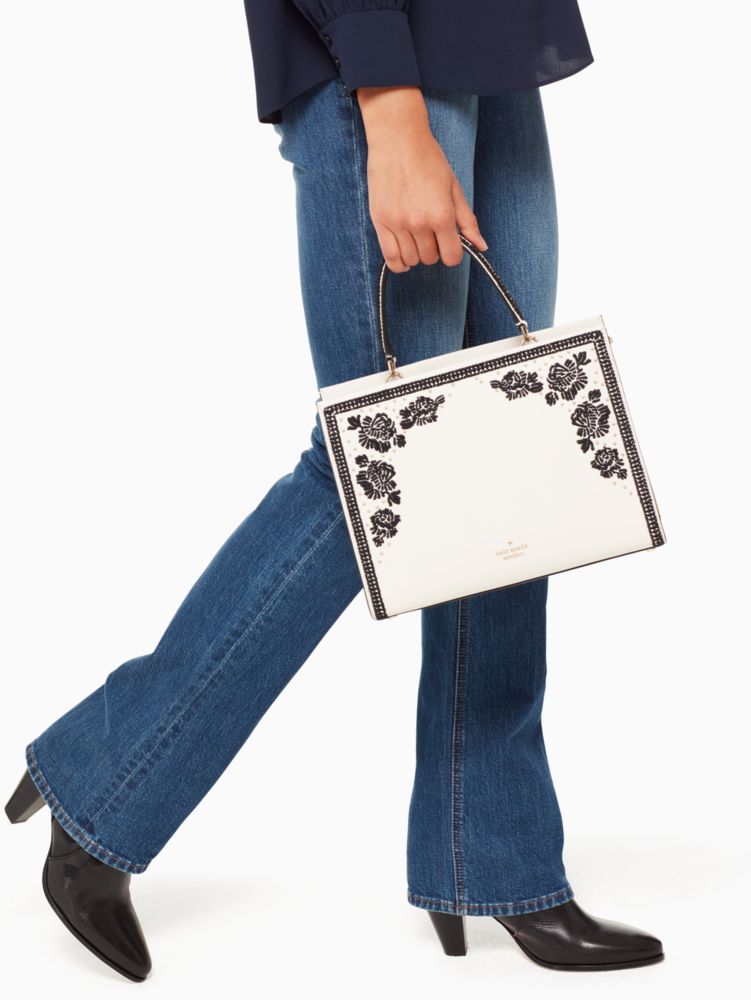 our cool, structural cameron street embroidery sarah is ladylike in form--it's meant to be carried in the crook of your arm, just so. but its intricate embroidery pattern lends a distinctly western vibe and renegade spirit, to match.