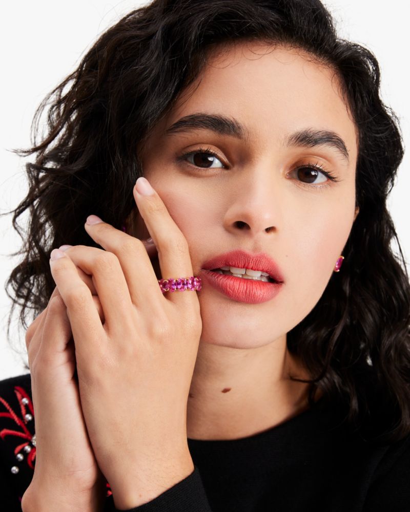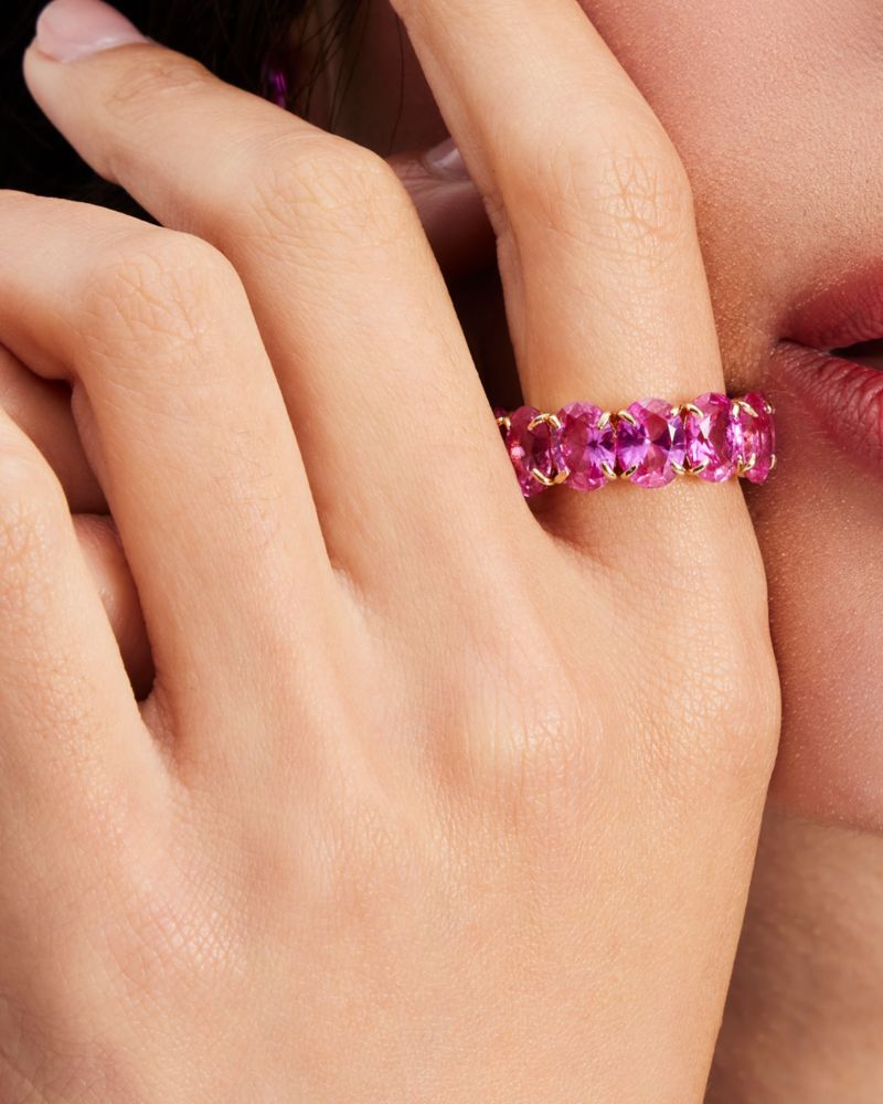 Embellished with colorful crystals, this sparkly eternity ring is sure to boost your mood—much like a trip to the candy shop.