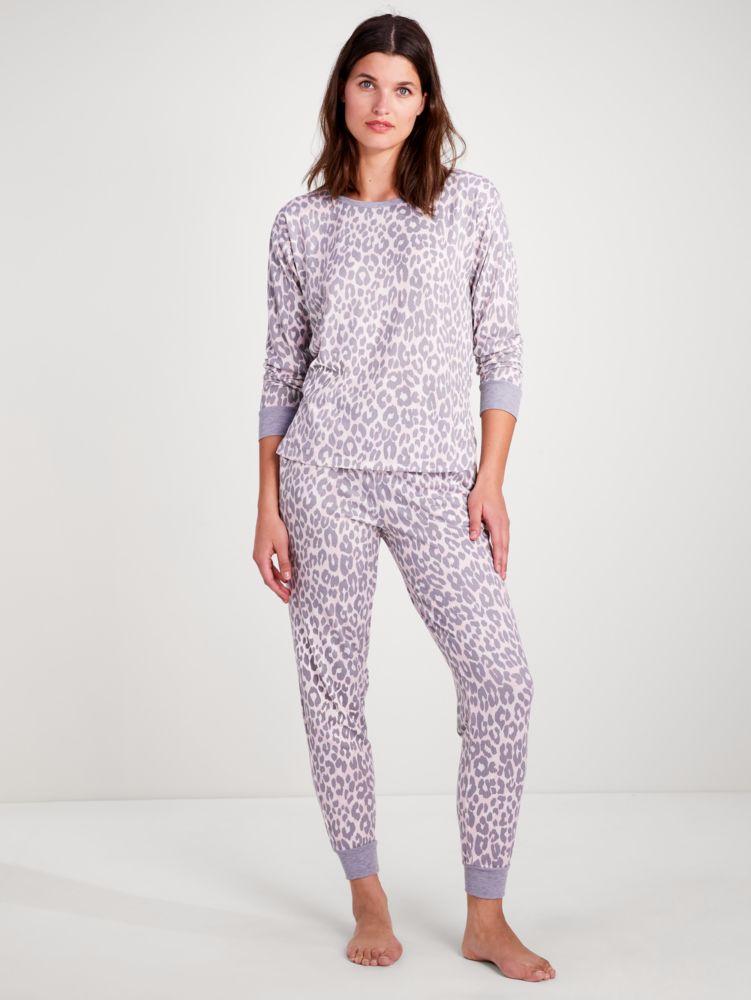 catch some z's in these jogger pjs styled with cheetah spots. (rawr.)