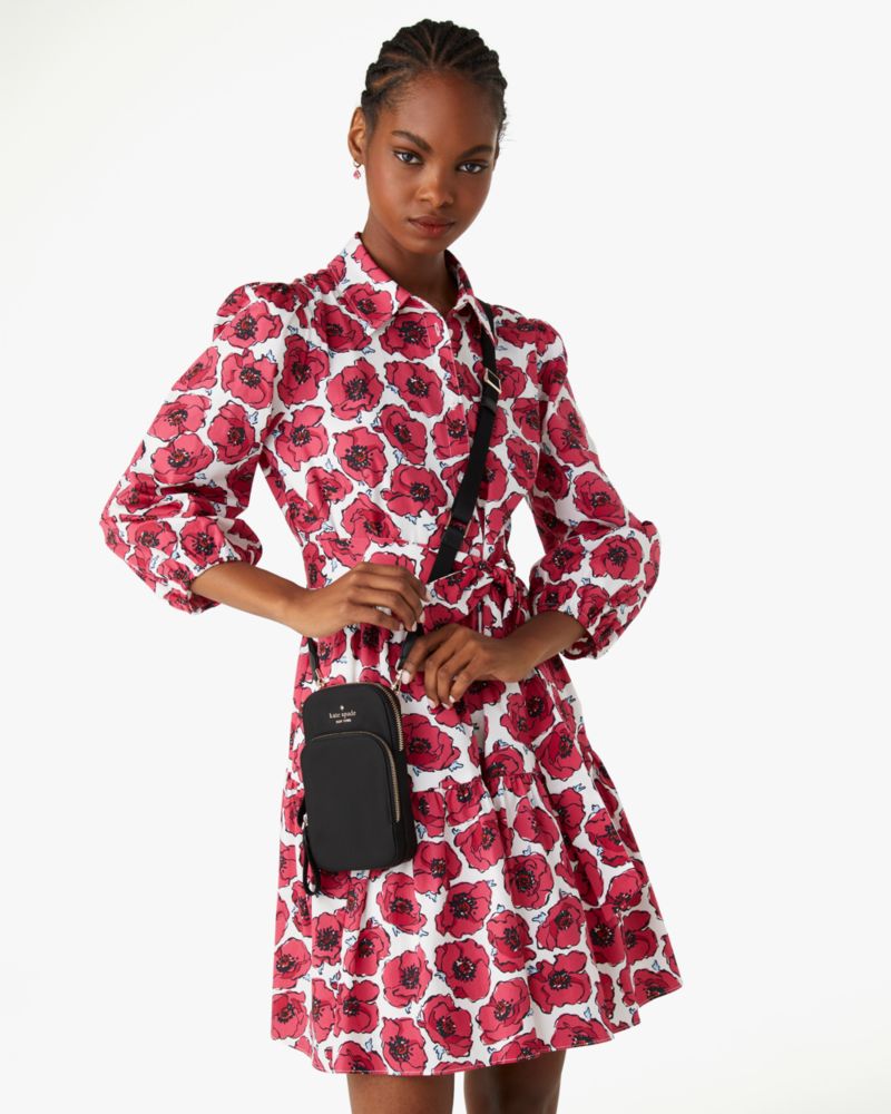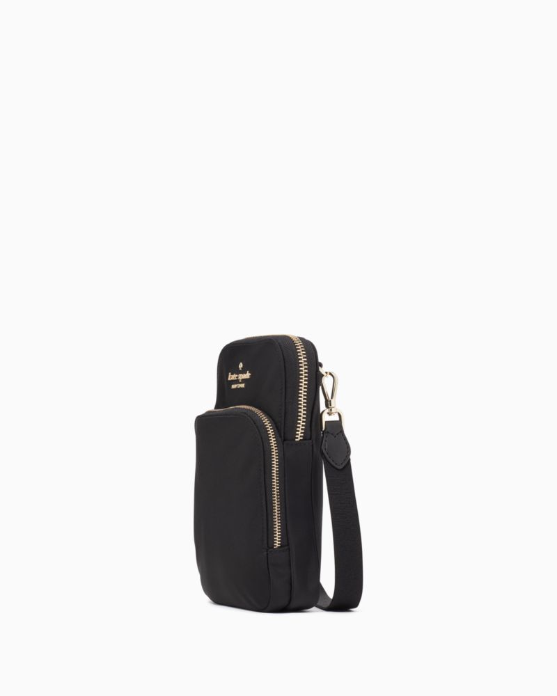 Kate Spade,Chelsea Dual Zip Phone Crossbody,Recycled Polyester,Mobile Bag,Logo,Metal,Lined,Casual,Black