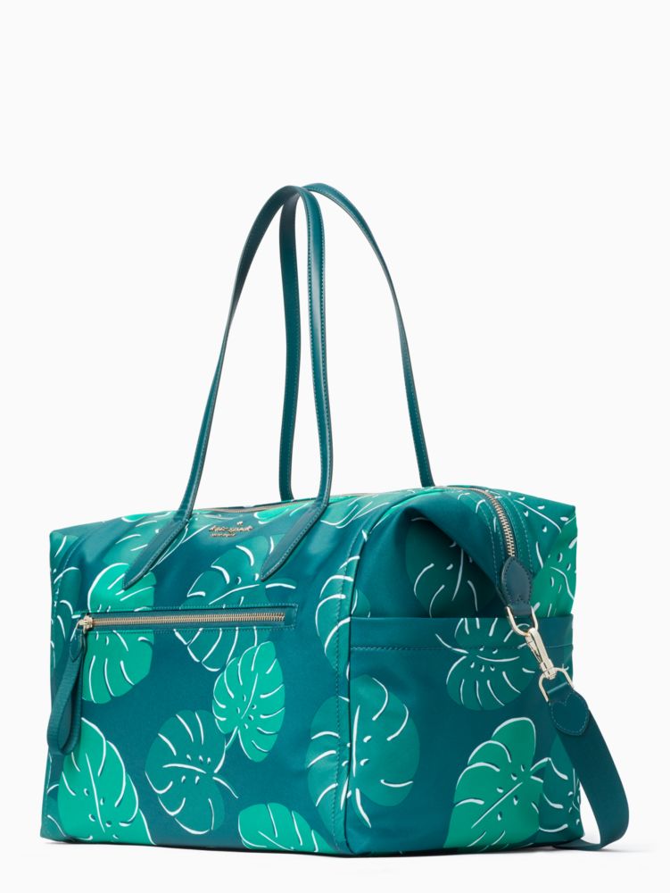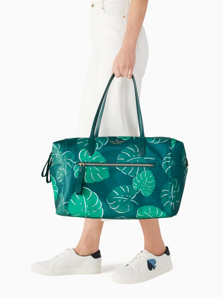 your fabulous wardrobe deserves to be carried in a fabulous travel bag. did we mention the pocket for organizing your toiletries? bon voyage.