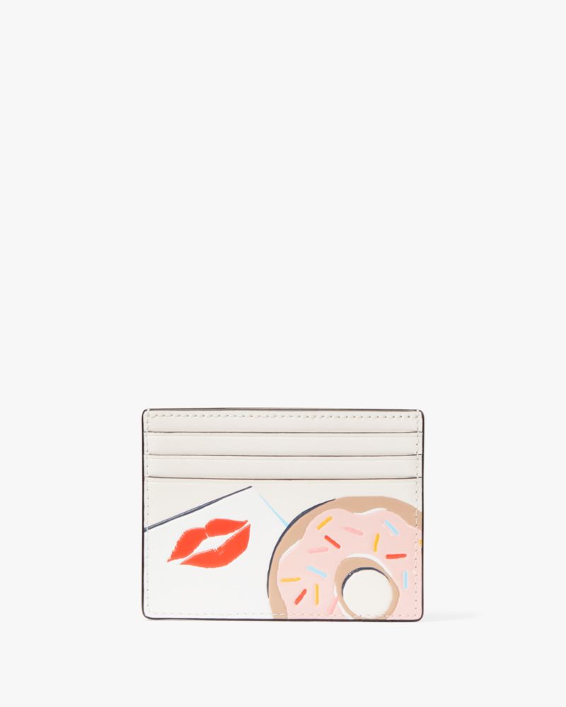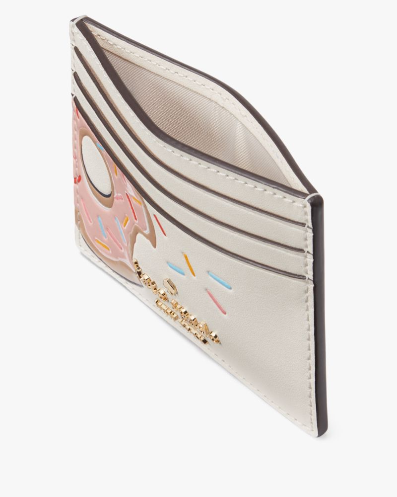 Kate Spade,Coffee Break Donut Small Slim Card Holder,Leather,Card Case,Metal,Logo,Gold Metal,Casual,Cream