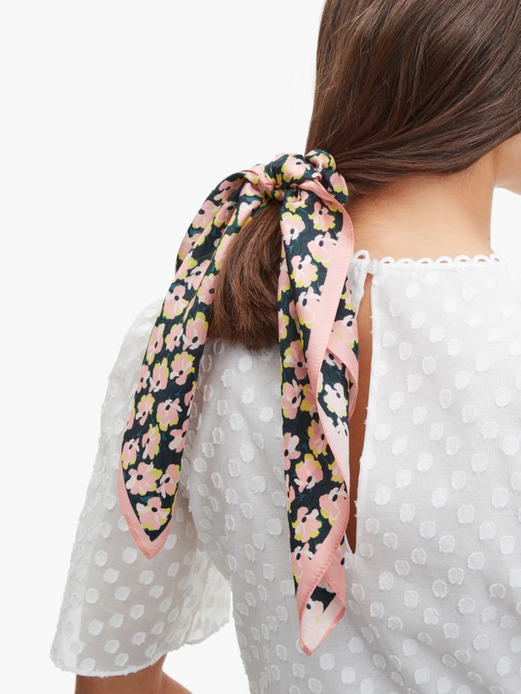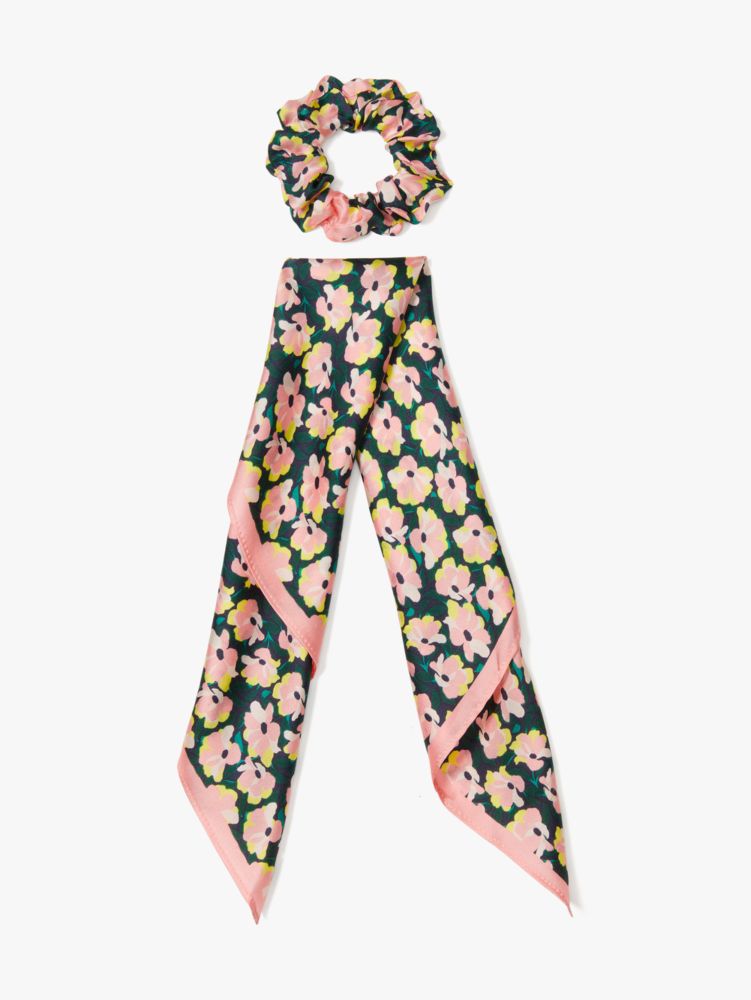 this silk hair tie is a masterpiece. seriously. not only can it also be worn as a bandana, its abstract colorblock floral print rivals a work of modern art...