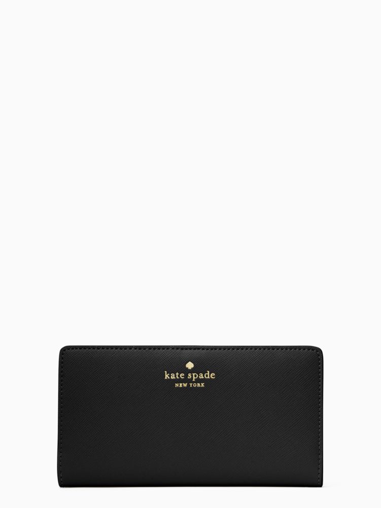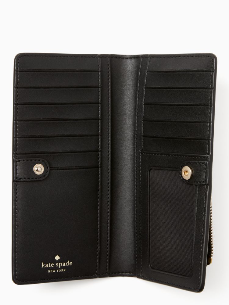 Kate Spade,Dana Large Slim Bifold Wallet,Continental,Bi Fold,PVC,Word Embellishment,Logo,Casual,Black