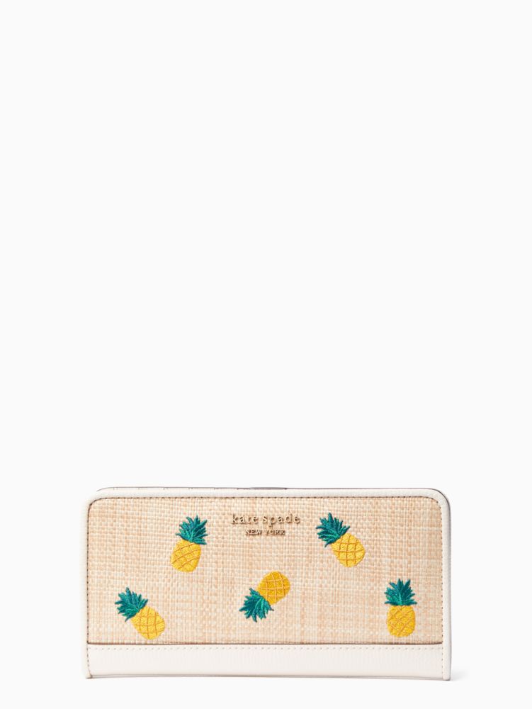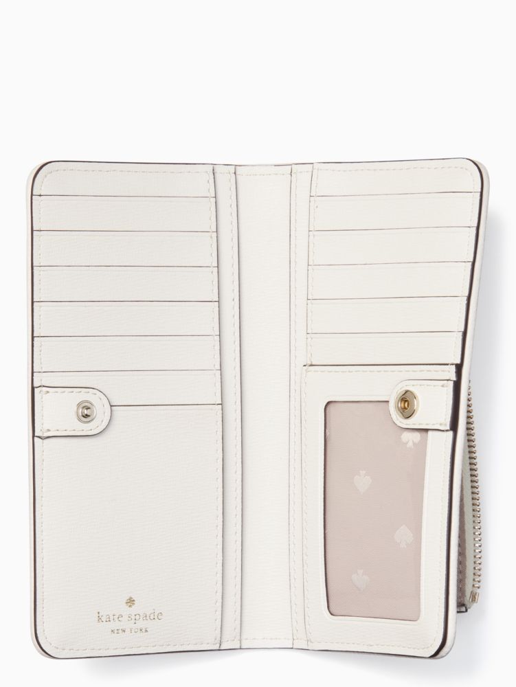 not only does this large wallet have multiple card slots, billfold compartments and zip pockets at the interior, it has a very pretty exterior. in this case, we think more is more.