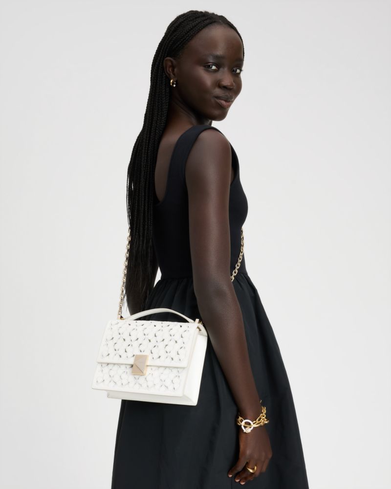 Kate Spade,Deco Eyelet Chain Shoulder Bag,Leather,Shoulder Bag,Eyelet,Logo,Gold Metal,Day Party,