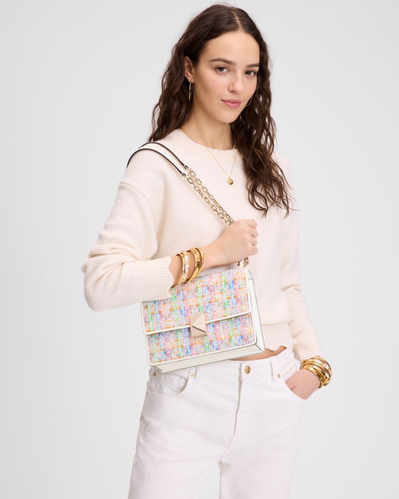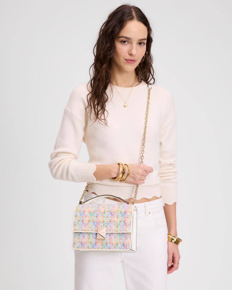 Perennially chic with luxe finishing touches, our Deco collection features elevated staples for both everyday and special occasions. This chain shoulder bag is made from tweed with our new K hardware inspired by Art Deco style.