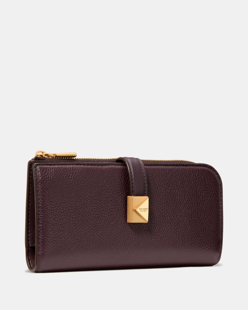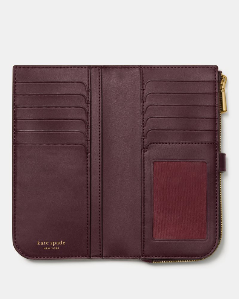 Kate Spade,Deco Zip Slim Wallet,Continental,Bi Fold,Sustainable,Casual,Maroon