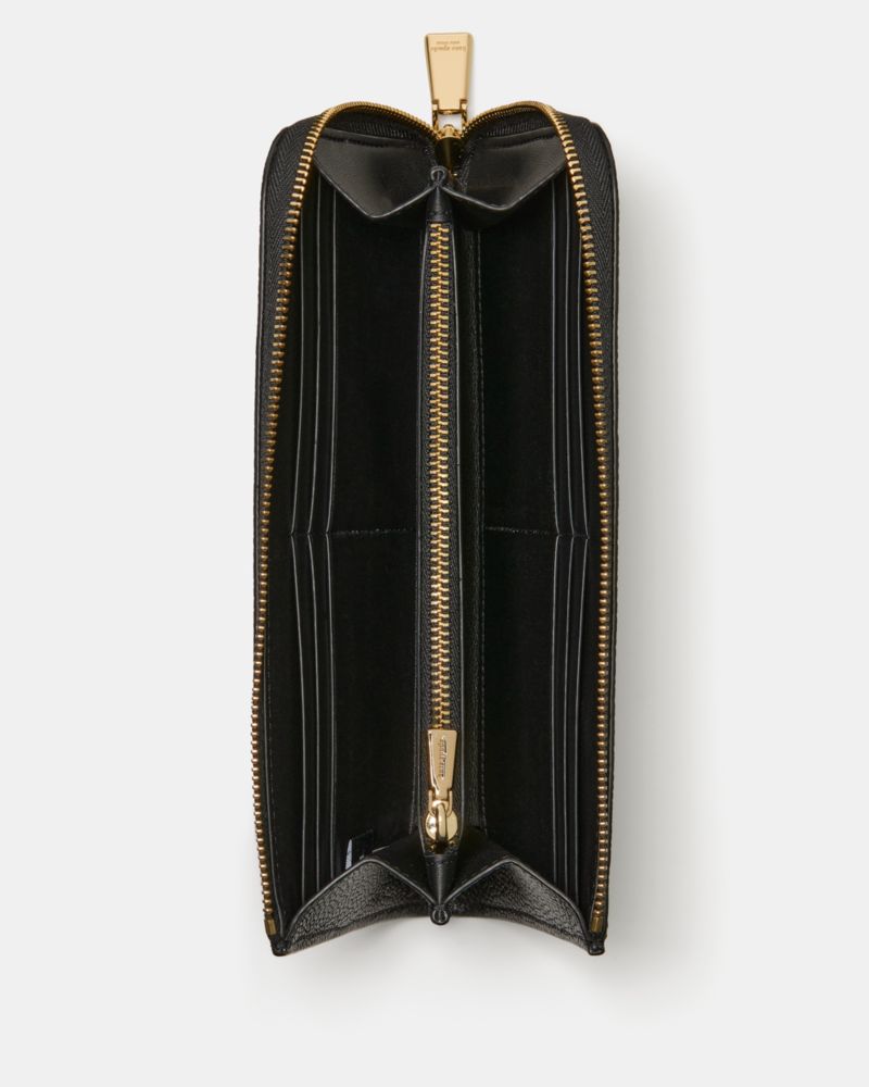 Kate Spade,Devin Pebble Zip Around Continental Wallet,Leather,Continental,Metal,Logo,Casual,Black