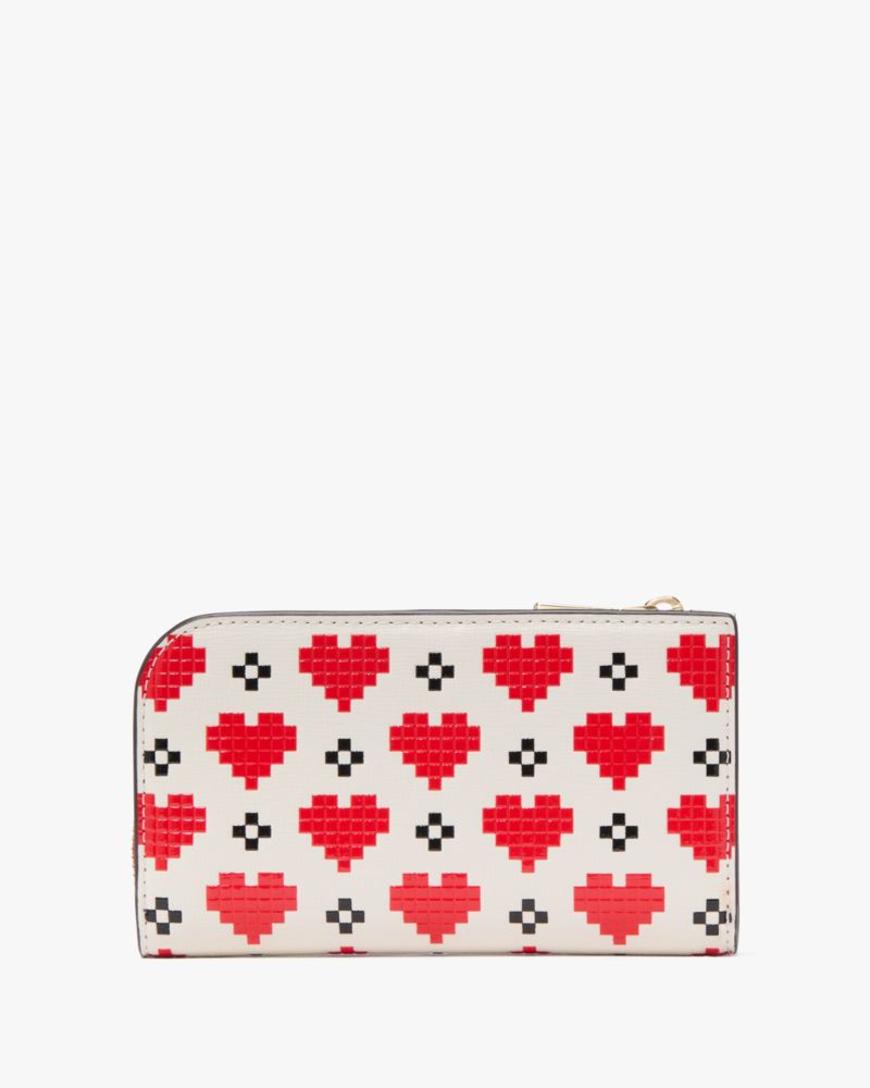 Reach for our Devin slim wallet on repeat. It’s made from scratch-resistant Saffiano leather (done in our Pixel Hearts print), so it’ll last for years to come.