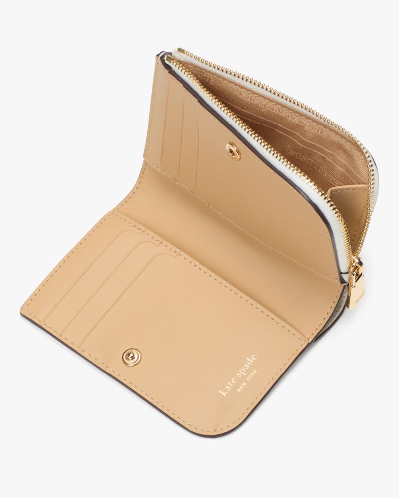 You'll reach for our Devin compact wallet on repeat. It’s made from smooth leather detailed with intricate Spade Flower perforations, so it’ll last—and look gorgeous—for years to come.