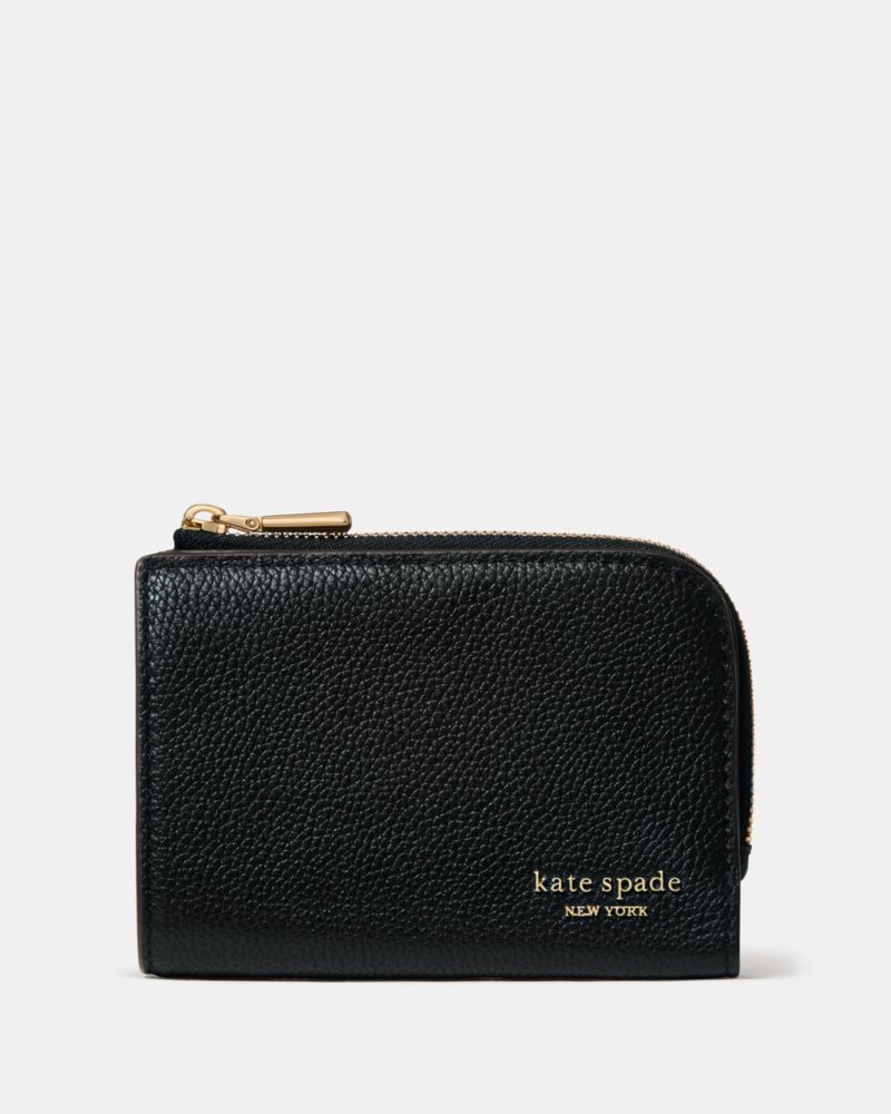 Kate Spade,Devin Small Compact Wallet,Leather,Bi Fold,Logo,Metal,Casual,Black
