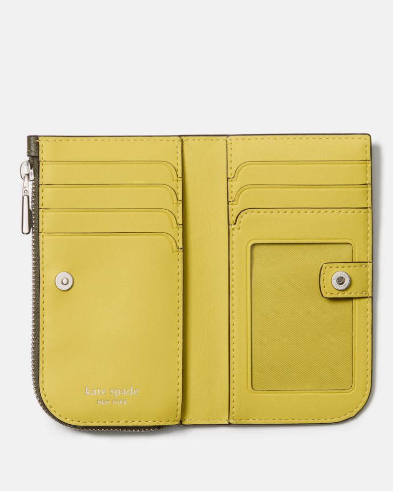 Kate Spade,Devin Small Slim Bifold Wallet,Leather,Bi Fold,Metal,Logo,Casual,Olive