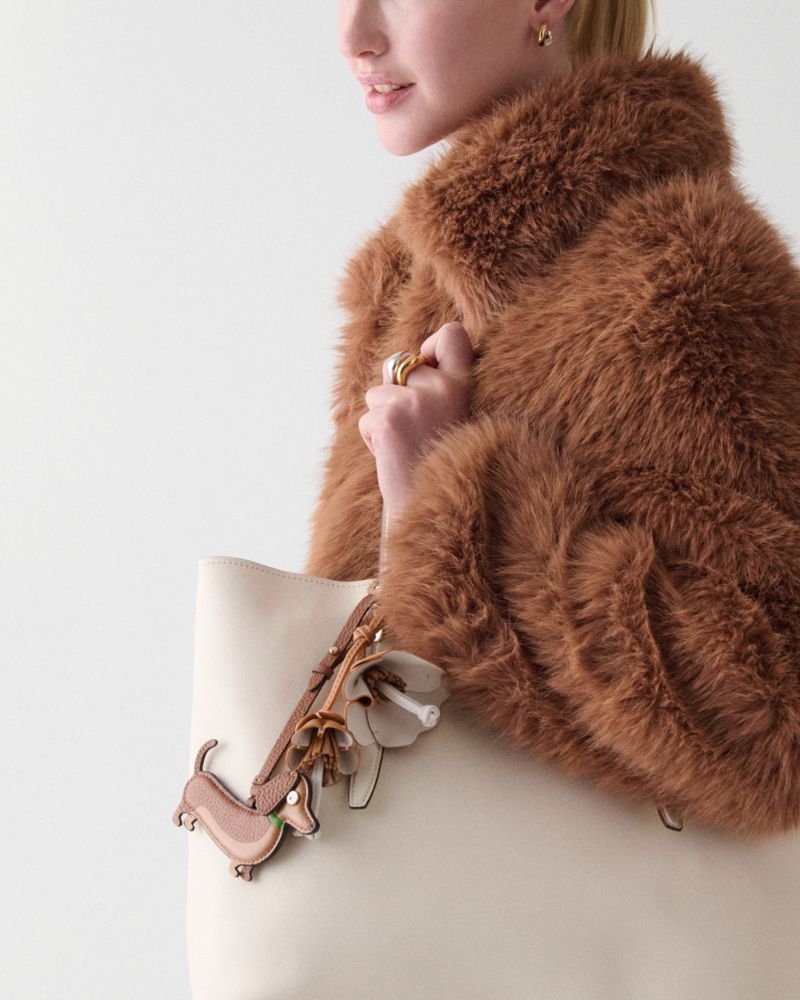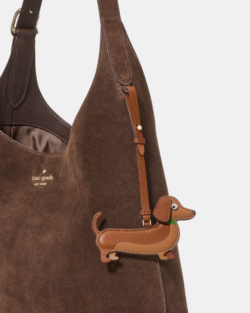 Kate Spade,Dog Dangle Bag Charm,Leather,Bag Charm,3D Embellishment,Key Ring,Gold Metal,Casual,Brown