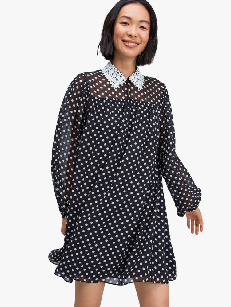a polka dot dress you'll want to do a happy twirl in. (we added those pleats for a reason.)