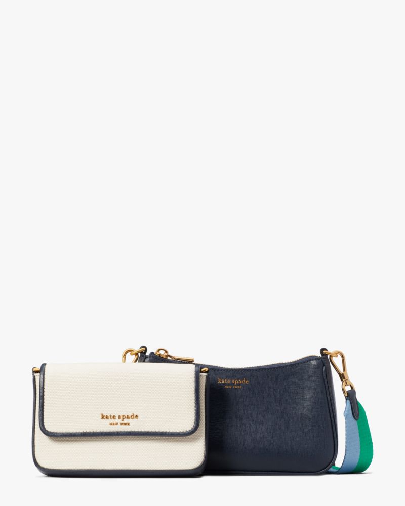 Proof that two is better than one. Our Double Up crossbody includes an optional canvas pouch that you can wear with the bag (or use on its own).