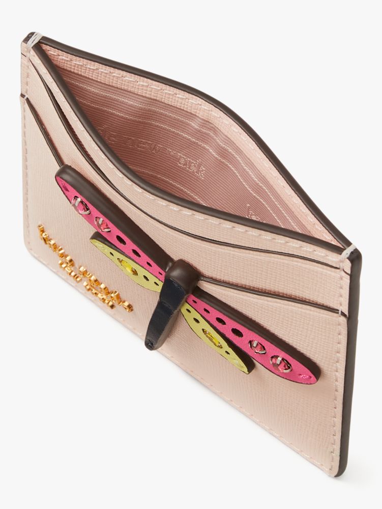 Stash your cards in this whimsical cardholder with an embellished dragonfly appliqué.