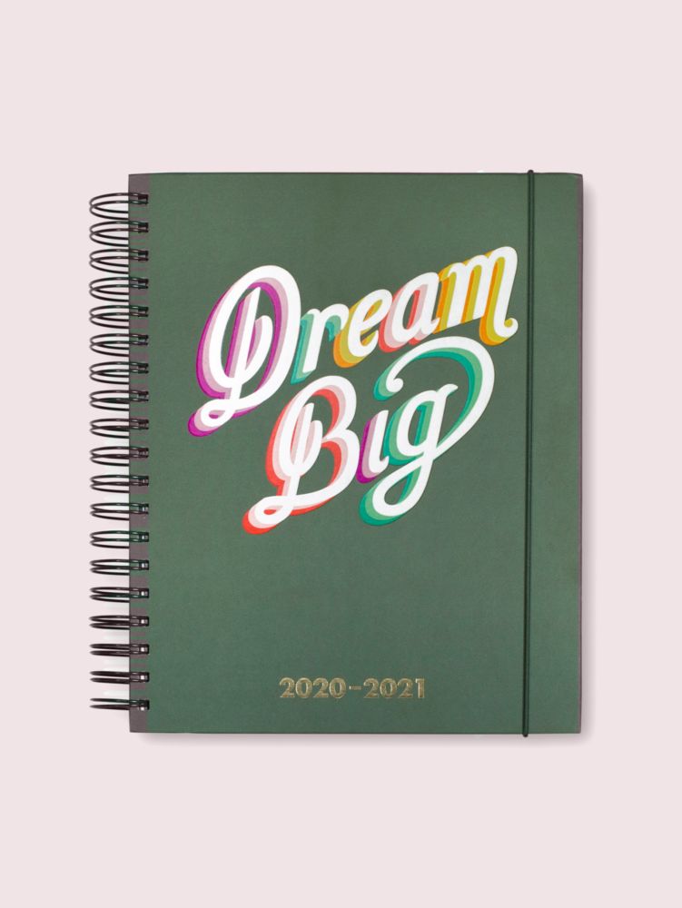 whatever you do, do it big. this 17-month planner will remind you daily to shoot no lower than the stars with its playful rainbow "dream big" lettering on the front.