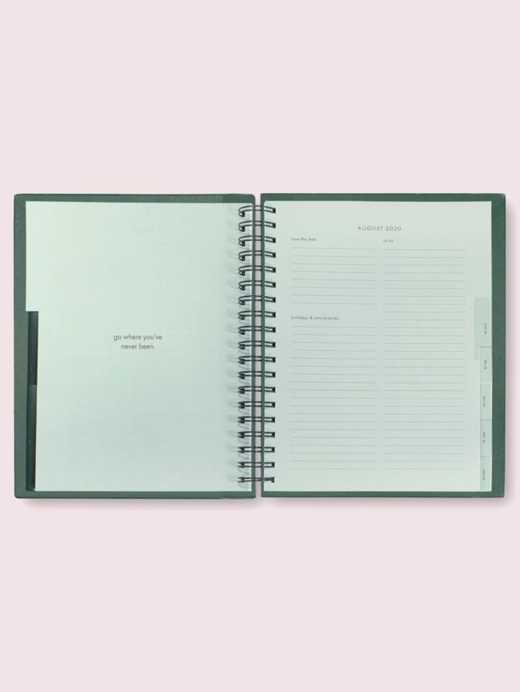 - includes: gold foil sticker sheet, laminated tabs, monthly & weekly spreads, holidays & celebrations, notes pages, interior pocket