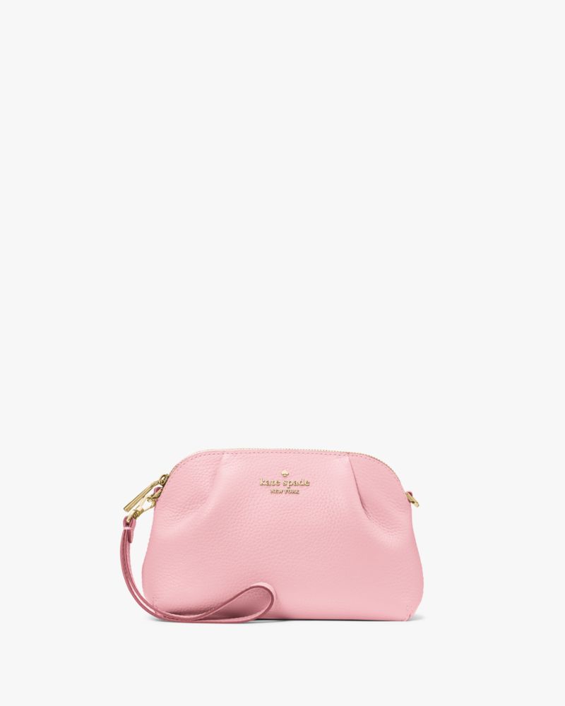 Kate Spade,Dumpling Convertible Crossbody,Leather,Crossbody,Wristlet,Logo,Metal,Pleats,Lined,Casual,Pink