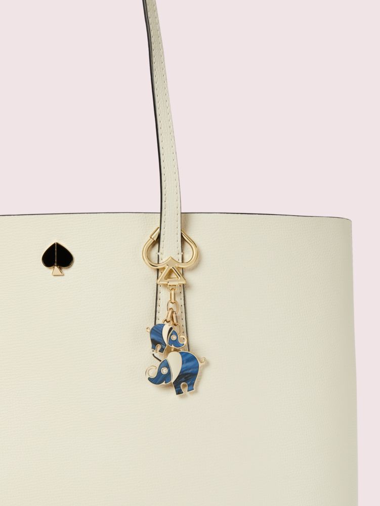 this key fob nods to the wise, gentle giants of the animal kingdom. styled with a shiny metal ring in the shape of our signature spade, you can clip this adorable accessory to your purse, backpack, keys--or anything with a loop, really.