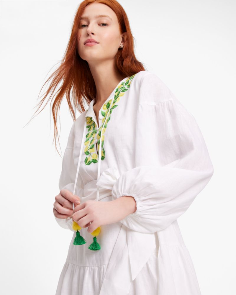 Embroidered with juicy lemons, this breezy linen shirtdress is perfect for the warmer weather.