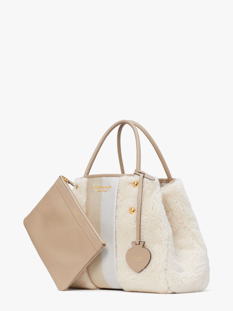Kate Spade,Everything Racing Stripe Faux Shearling Medium Tote,