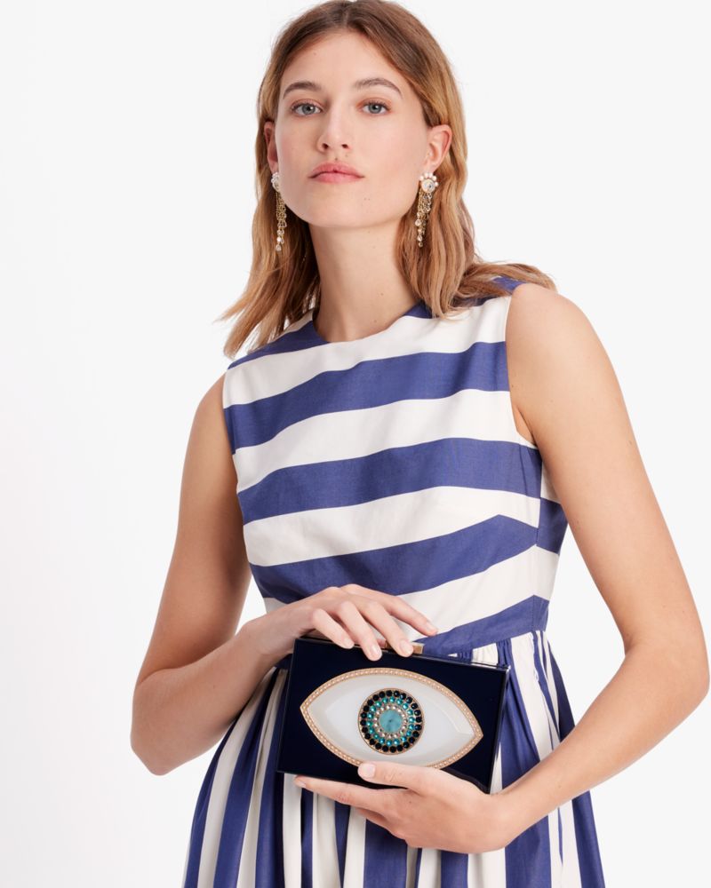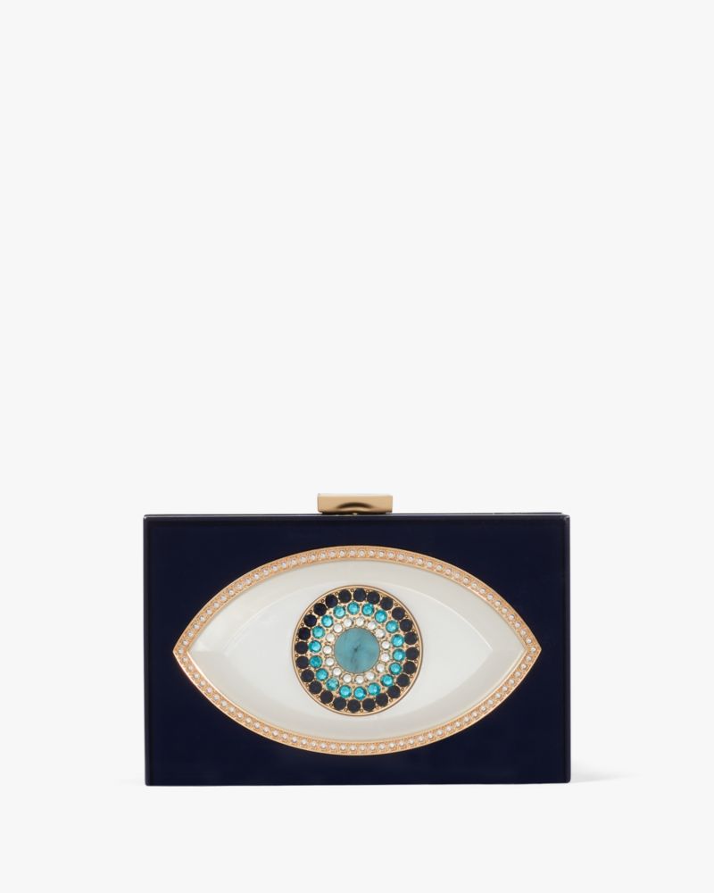 Bring on the glamour with this sleek resin clutch featuring dazzling crystal embellishments. This style features the Evil Eye, a culturally treasured symbol of protection.