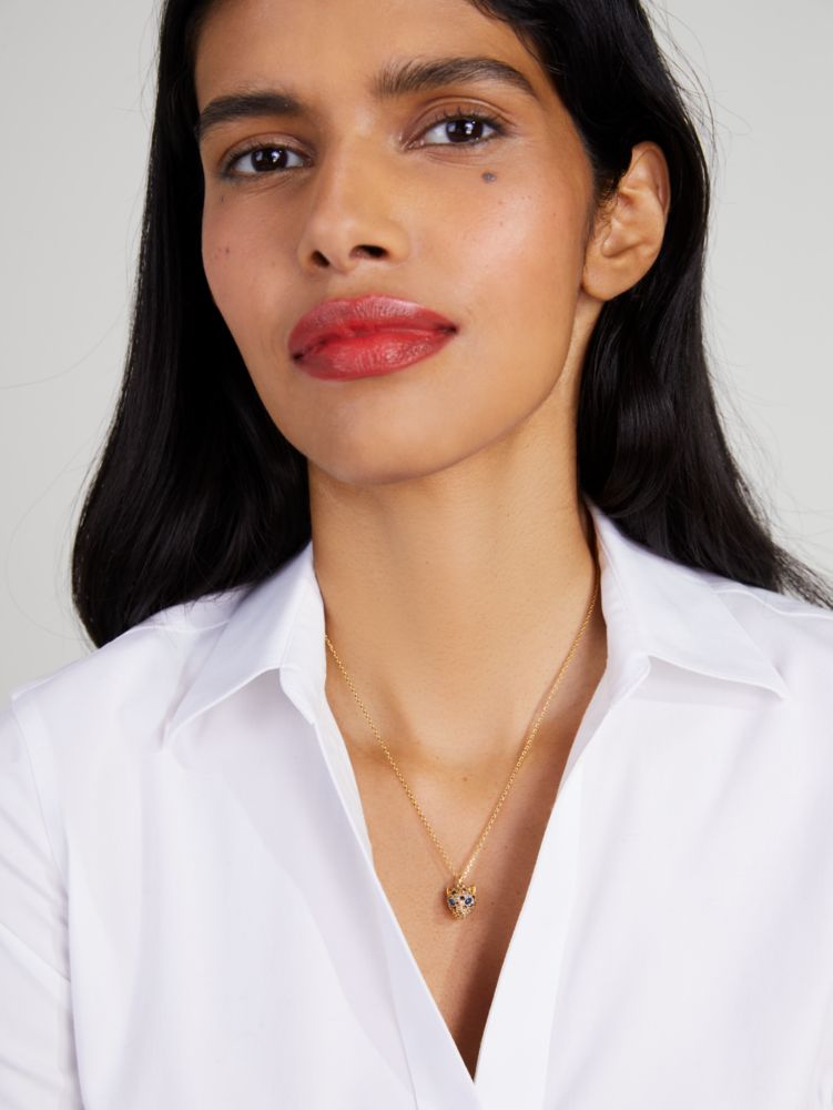 Featuring a crystal-encrusted leopard with striking jewel eyes and spots, this mini pendant will have you feeling fierce. (Rawr.)